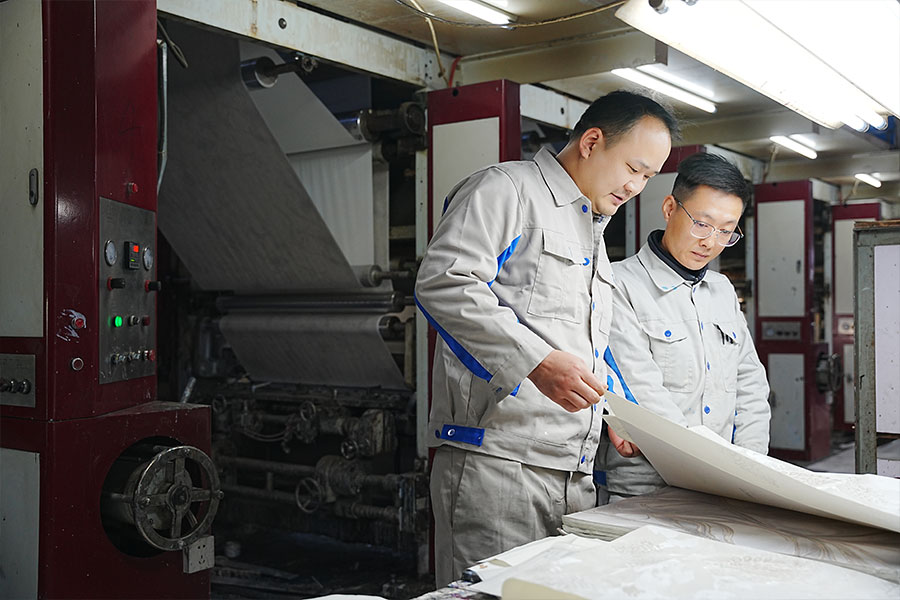 Von Rohstoffen und Halbfertigprodukten bis hin zu Fertigprodukten muss jede Tapetenrolle drei Kontrollpunkte bestehen: manuelle Sichtprüfung, Instrumentenprüfung und praktische Probentests, um eine 100-prozentige Einhaltung der Exportqualitätsstandards sicherzustellen.